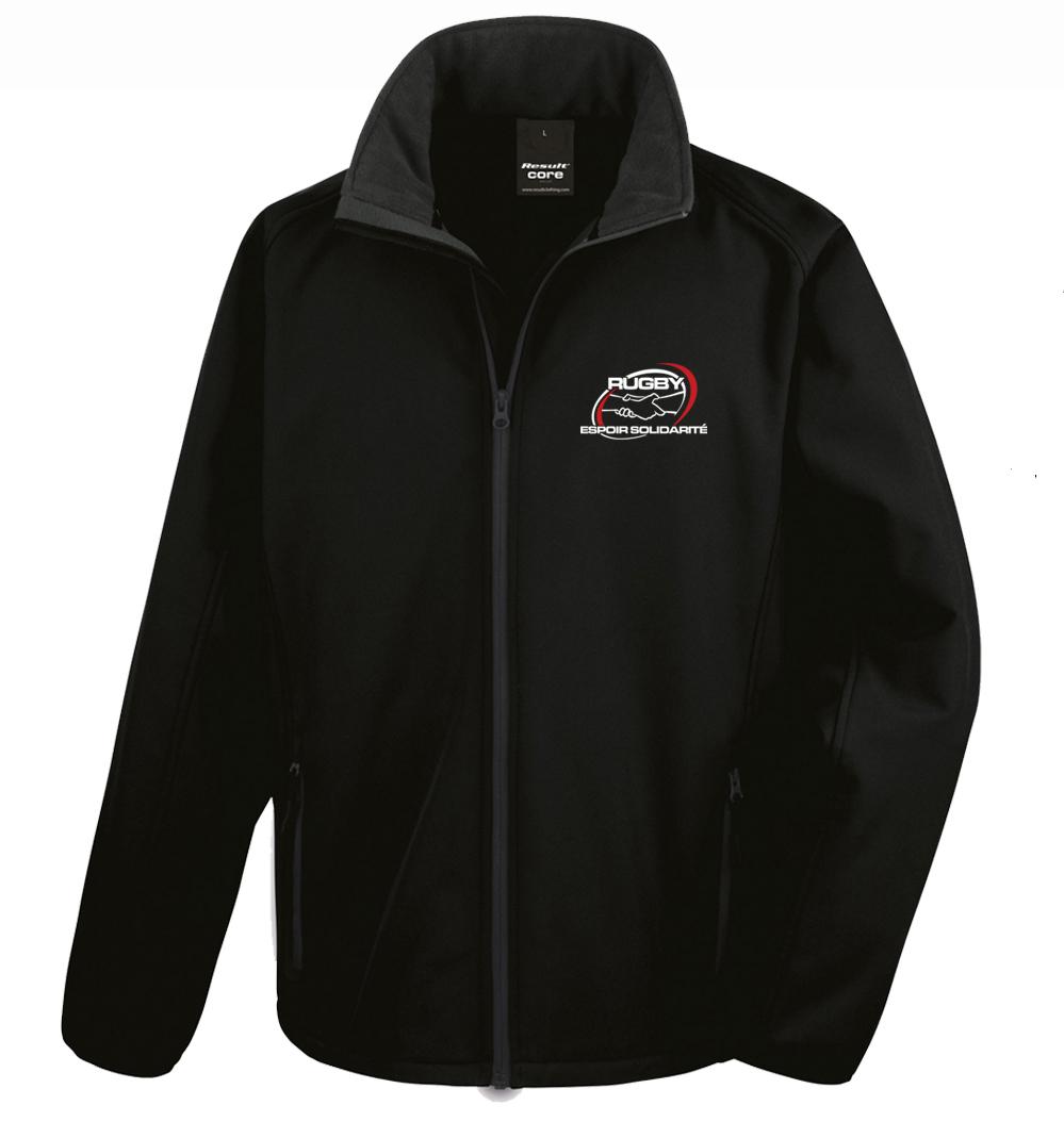 Tissu extensible 2 couches, fils texturés, avec couche extérieure 100% polyester et couche intérieure 100% polyester micropolaire. Résistant à l'eau, respirant et coupe-vent. Surpiqûre décorative. Fermeture zippée à l'avant avec protège-menton. Poches latérales zippées. Poignets élastiqués. Étiquette détachable. Lavable 60°C.
